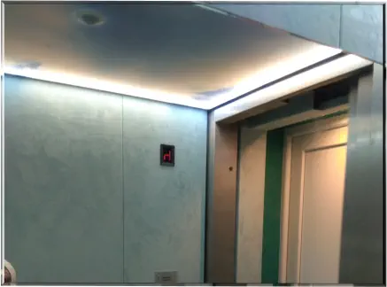 Raumes. Es können nahezu beliebig viele Leuchten ein- und angebaut werden.